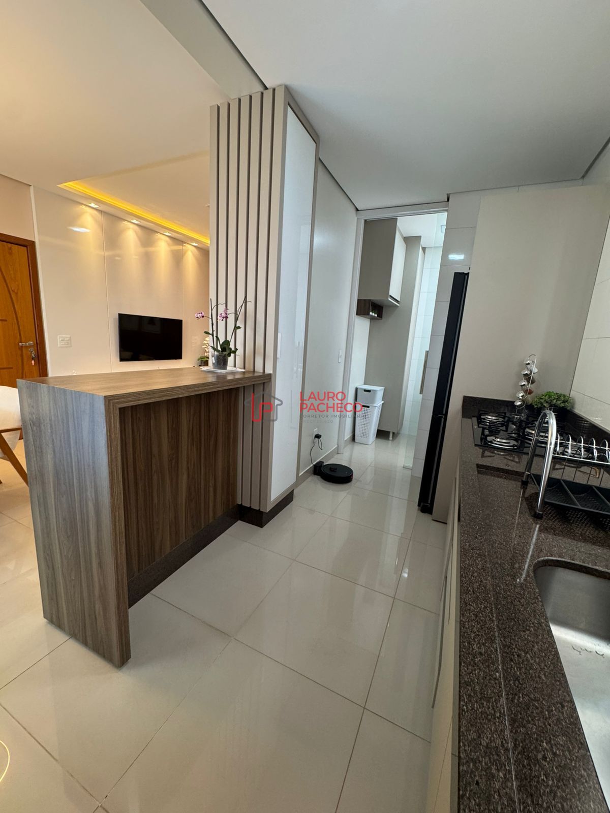 ✔️ Sala para 2 ambientes, integrada com a cozinha